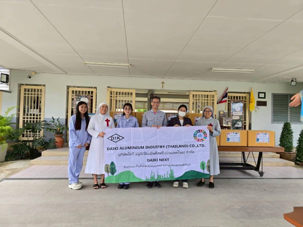 9月25日、第一工場近くの児童養護施設に訪問し、ダイキアルミ(タイ)の従業員に不用品の寄付を呼びかけて集まった 子供服、絵本、おもちゃなどを寄付しました。