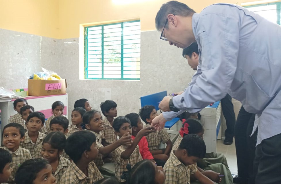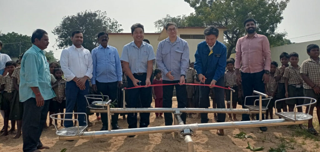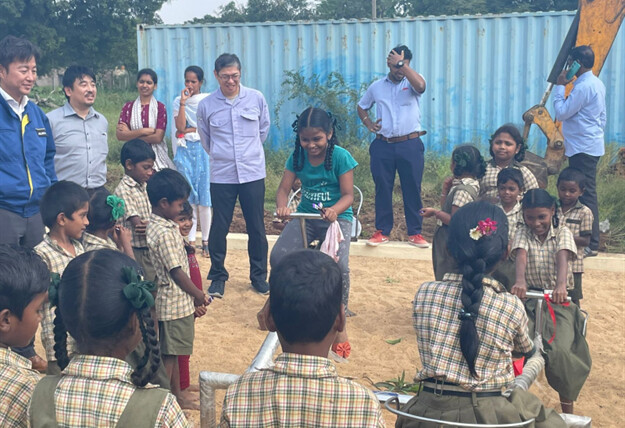 12月11日、小学校2校へ訪問し、ブランコやシーソーなど遊具の寄付をしました。 今回の活動は、スリシティ日系企業グループの活動で、弊社以外の日系企業も参加していました。